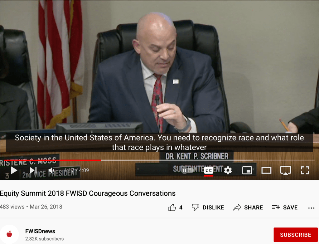 The FWISD has many videos explaining their support for Courageous Conversations and the Equity walks. It appears that the anti-racism Ibram X. Kendi work that is being done is done so that the Equity Department can have relevance to exist and use taxpayers’ money. On the Equity Courageous Conversations 2018 video, several FWISD employees praise the Equity work. One of the directors even stated that “if you are uncomfortable with it, then you might be the issue; if you are not on board, then this isn’t the place for you.” How ironic. So if you criticize any of their approaches, I guess you are to be shunned and not given a voice.