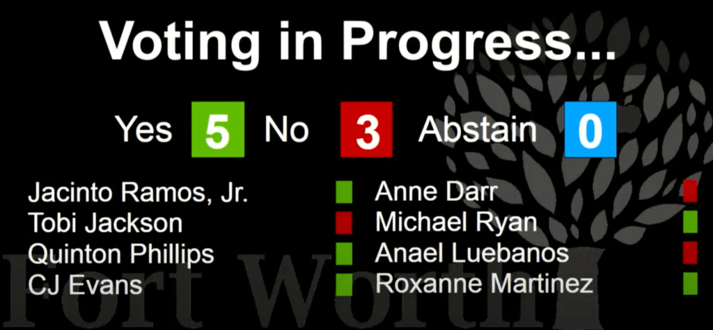 It is no surprise that the final vote for the E2 modified map was a 5-3 vote. E2 Modified map would move precinct 1005 back to district four. Under the original Redistricting committee plan (E2), the precinct would have been moved to district 2. Jacinto Ramos and his progressive squad objected, stating that precinct 1005 would have displaced a candidate of color from district four. This candidate is Wallace Bridges, who has ties to Leadership ISD and Ramos. Quinton, Ramos, CJ Evans, and Roxanne voted against the E2 original plan, while Tobi, Ryan, Darr, and Luebanos voted against Ramos’s E2 modified map. Both motions ended up in a tie. By the third round, Ramos made a motion again for the E2 modified map, and the motion passed with a 5-3 vote with Ryan joining. Ramos was quoted saying, “can I make the same motion that I made before? So id like to put that first motion back out there. Yeah… this is healthy democracy I’m not tripping.”